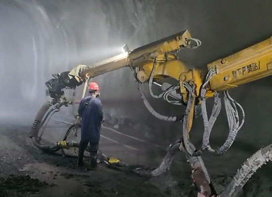 混凝土濕噴臺(tái)車是大型智能化濕噴設(shè)備,又稱為濕噴機(jī)械手、機(jī)械臂噴漿機(jī),噴射混凝土量每小時(shí)30立方,具有施工機(jī)械化程度高、安全性強(qiáng)、工作效率高、覆蓋范圍廣、回彈率低、操作靈活方便等特點(diǎn)。混凝土濕噴臺(tái)車廣泛應(yīng)用于鐵路、公路隧道、邊坡、水利、水電的隧洞和涵洞、地鐵以及各種建筑工程等濕噴混凝土作業(yè)。
